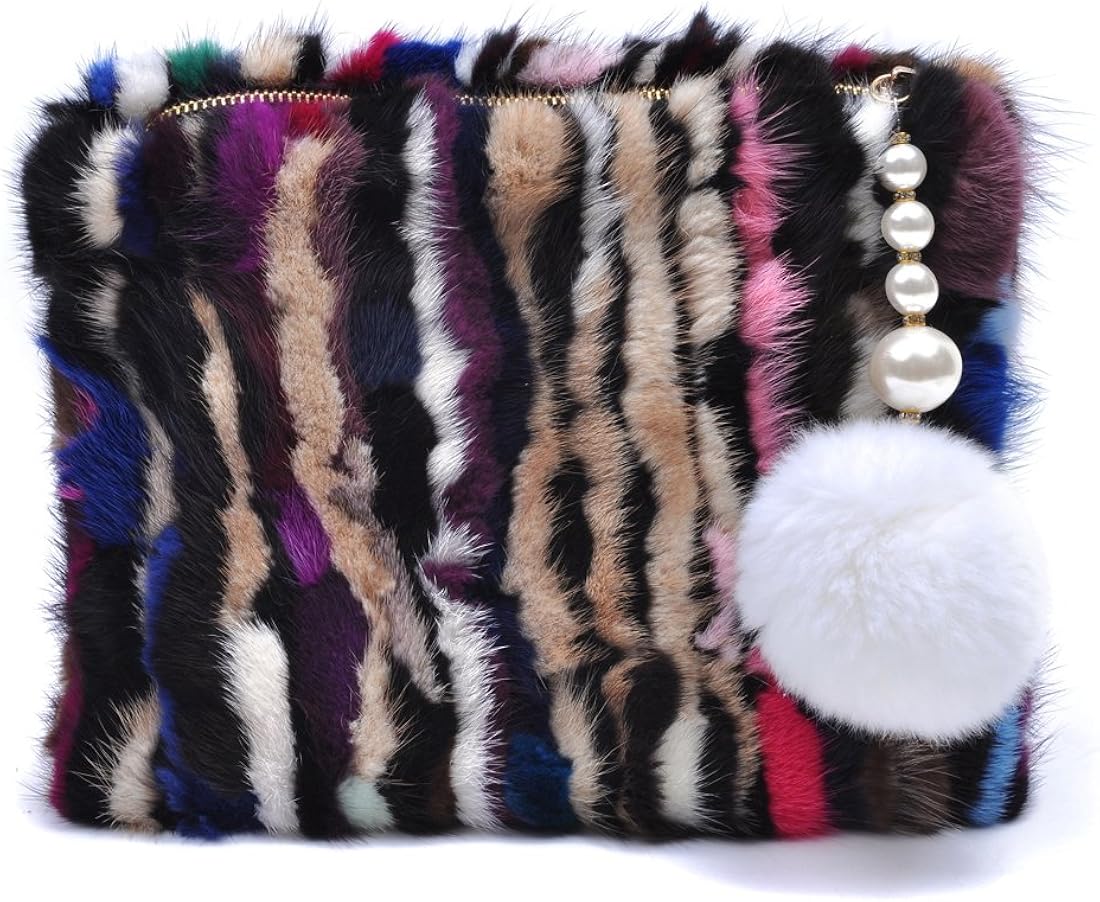 Zarapack Women S Genuine Mink Fur Evening Clutch Handbag Multi Color Style 2 Handbags Amazon Com