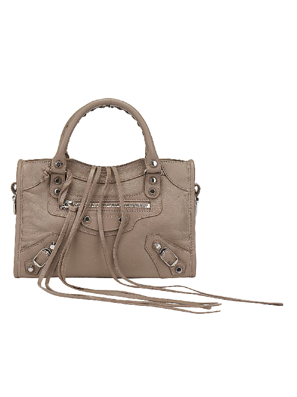 Balenciaga Classic Mini City Arena Crossbody Dark Mink Grey In Grey Fashionette