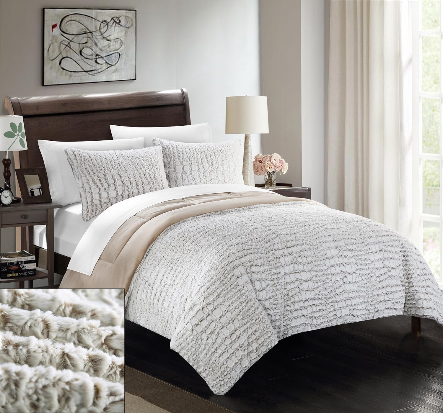 Amazon Com Chic Home 3 Piece New Faux Fur Collection With Mink Like Backing In Alligator Animal Skin Design Comforter Set Queen Beige Home Kitchen