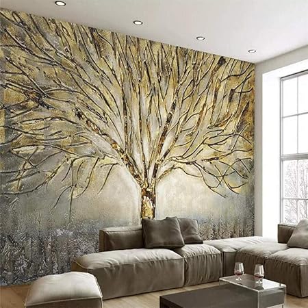 Wfbag Custom 3d Mural Wallpaper Metal Embossed Fashion Tree Oil Painting Tv Background Wall Art Poster Wall Decoration Mural 200x140cm Amazon Co Uk Kitchen Home