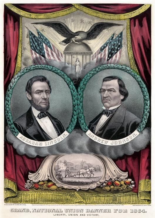 Amazon Com Presidential Campaign 1864 Campaign Poster For Abraham Lincoln And Andrew Johnson As The National Union Republican Party Candidates For President And Vice President Poster By Currier Ives 1864 Pos Posters
