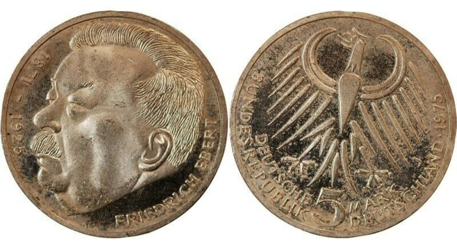 1975 5 German Mark Silver Commemorative Coin 50th Death Anniversary Of Friedrich Ebert First President Of Germany Infamous For Anti Communist Massacres Deutsche Mark Circulated Graded By Seller At Amazon S Collectible Coins Store