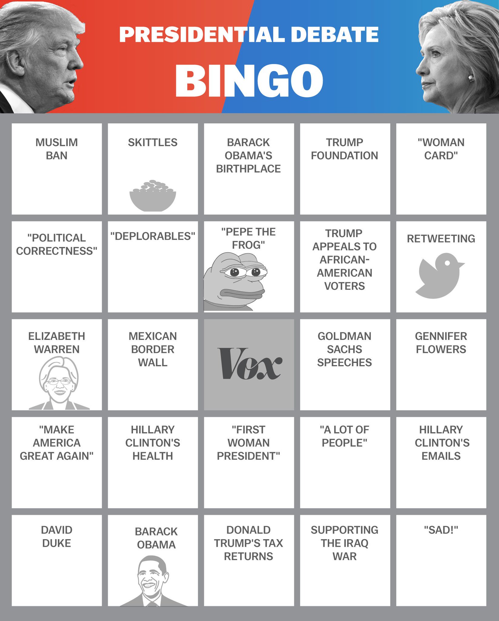 The 2016 Presidential Debate Bingo Cards