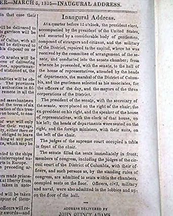 Inaugural Address Of John Quincy Adams The Maryland Jew Bill Rarenewspapers Com