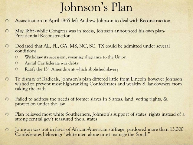 President Johnsons Plans For Reconstruction Differed From Lincolns In That