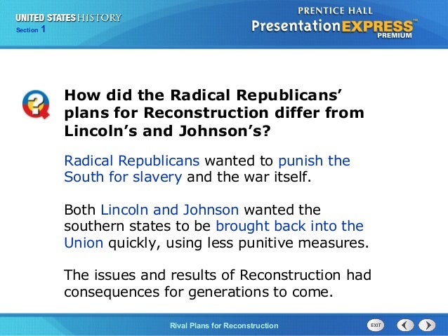 Chapter 12 Section 1 Rival Plans For Reconstruction Focus Question The