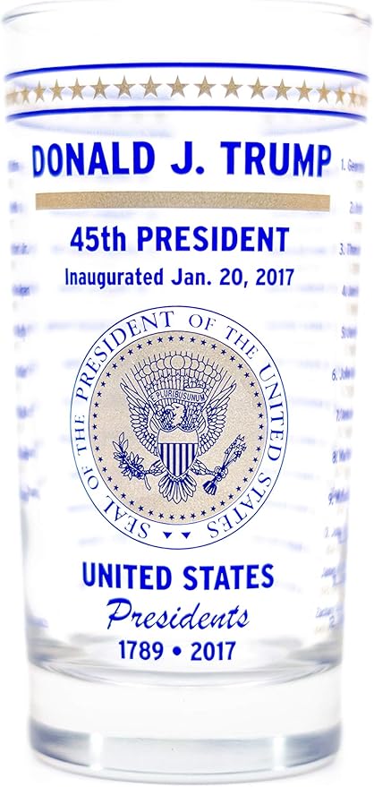 Amazon Com Us Presidential Collector S Glass Made In Usa Donald Trump Drinking Glass With Presidential Seal Learn All Of The Presidents Of The United States Great Gift 1 Glassware Drinkware