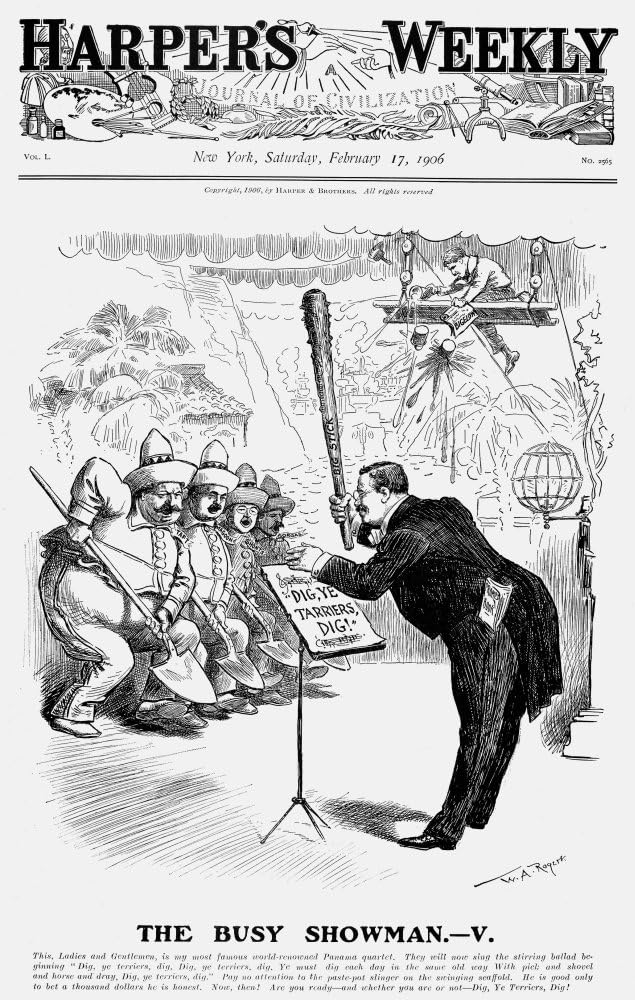 Amazon Com Roosevelt Cartoon 1906 Nthe Busy Showman President Theodore Roosevelt Urging His Team Of Workers Including William Howard Taft And William Crawford Gorgas To Dig Harder And To Pay No Attention To