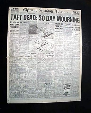 Amazon Com William Taft Taft 27th President Of U S Chief Justice Death 1930 Newspaper Chicago Sunday Tribune March 9 1930 Entertainment Collectibles