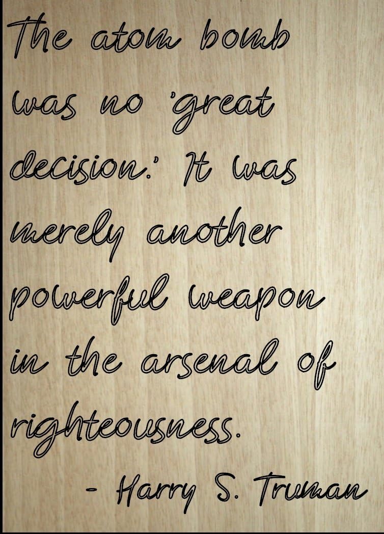 Harry S Truman Quote The Atom Bomb Was No Great Decision It Was Merely Another Powerful Weapon In The Arsenal Of Righteousness 7 Wallpapers Quotefancy