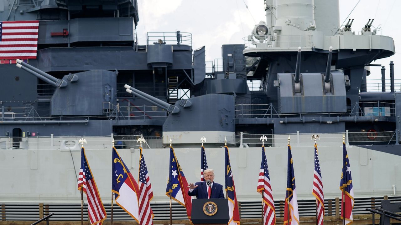 Trump Takes Jab At Biden During V J Day Visit To Battleship Wunc