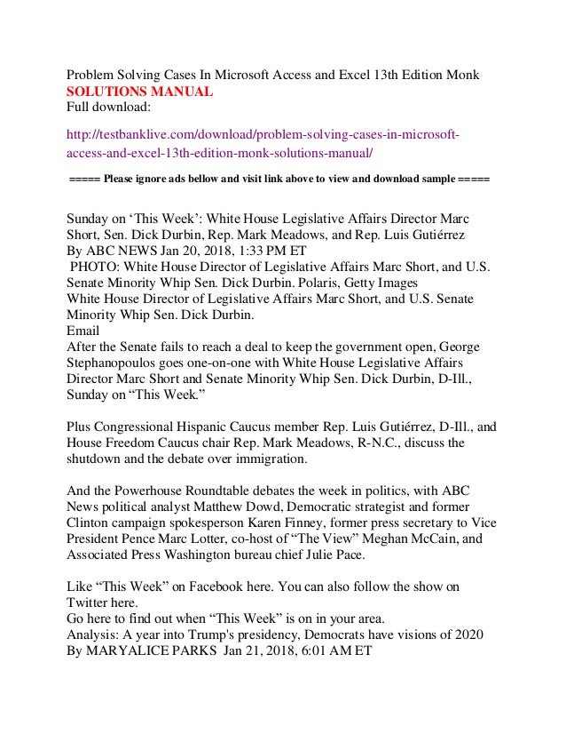 Problem Solving Cases In Microsoft Access And Excel 13th Edition Monk