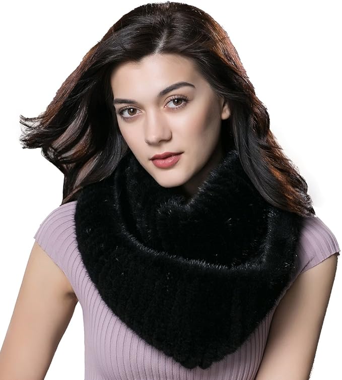Ursfur Women Fur Knitted Cowl Scarf Real Mink Fur Infinity Scarves Black At Amazon Women S Clothing Store