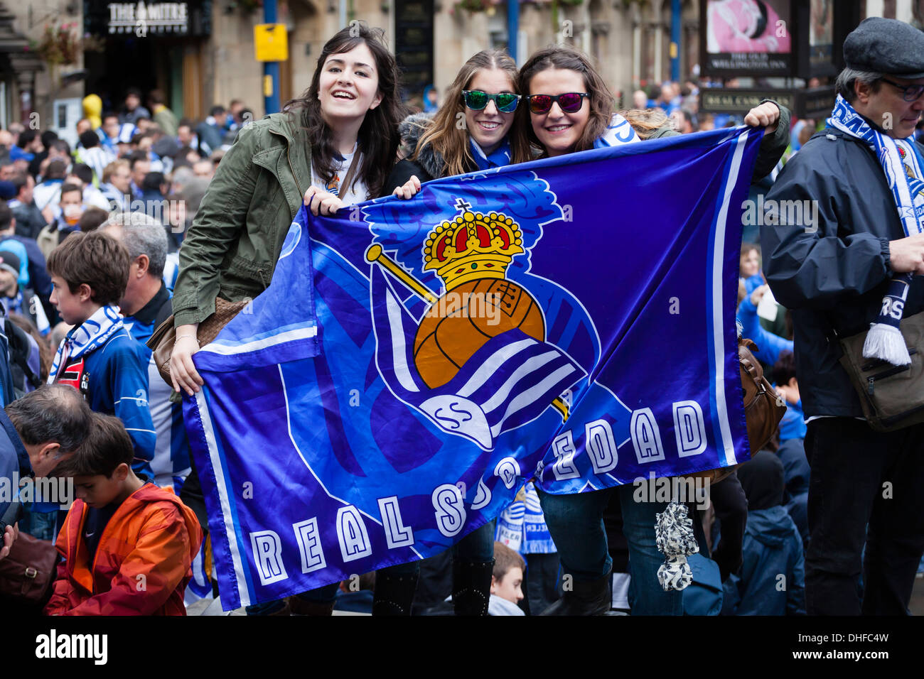 Fans Of Real Sociedad In Manchester City Centre Before Their Teams Stock Photo Alamy