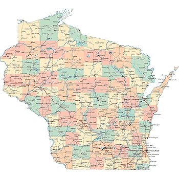Amazon Com Large Detailed Roads And Highways Map Of Wisconsin State With National Parks And Cities Vivid Imagery Laminated Poster Print 20 Inch By 30 Inch Laminated Poster Posters Prints