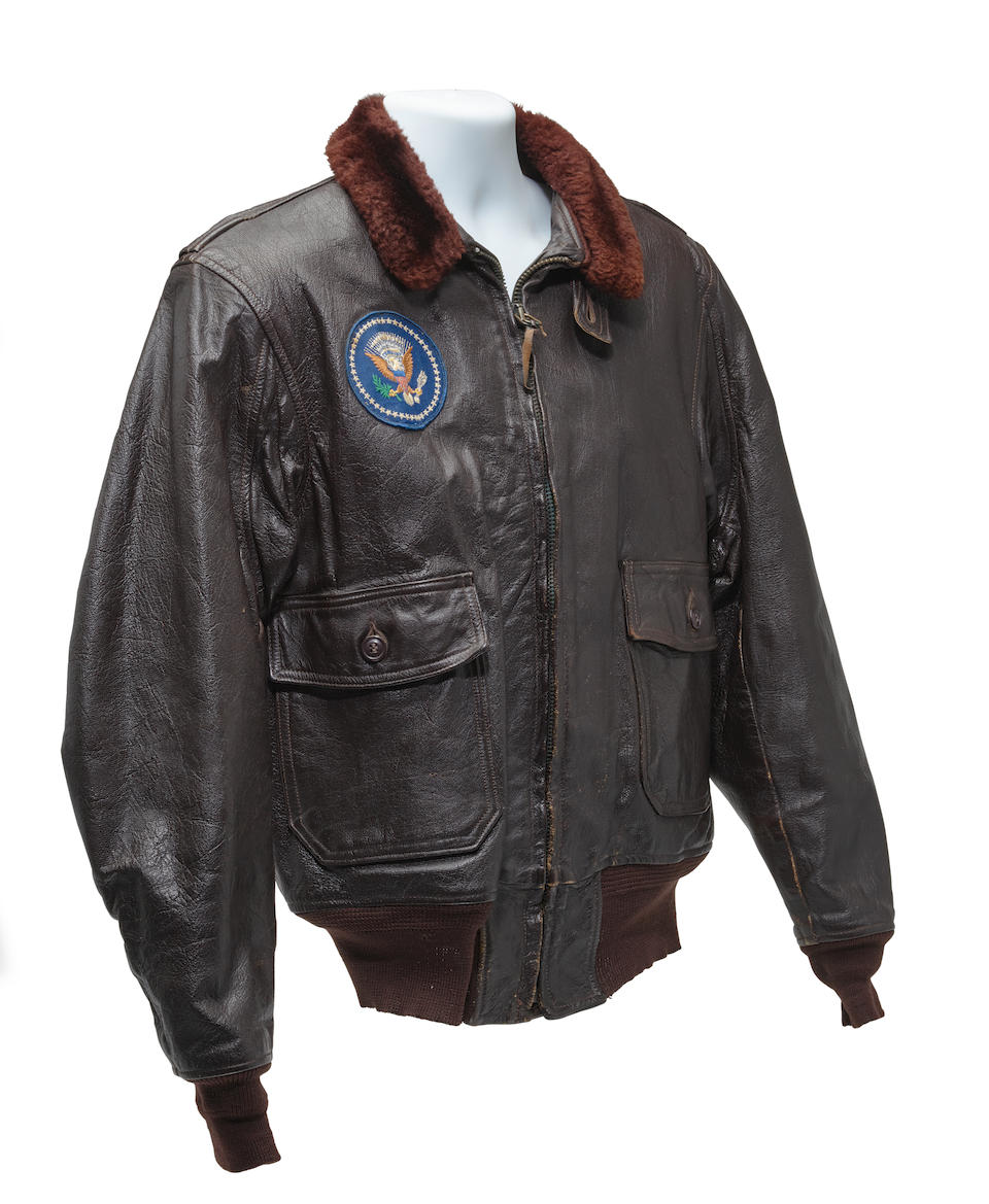 Bonhams J F K S Air Force One Bomber Jacket Given To David Powers An Original U S Government Issue G 1 Flight Jacket With Sewn Patch Of The Seal Of The President Of The United