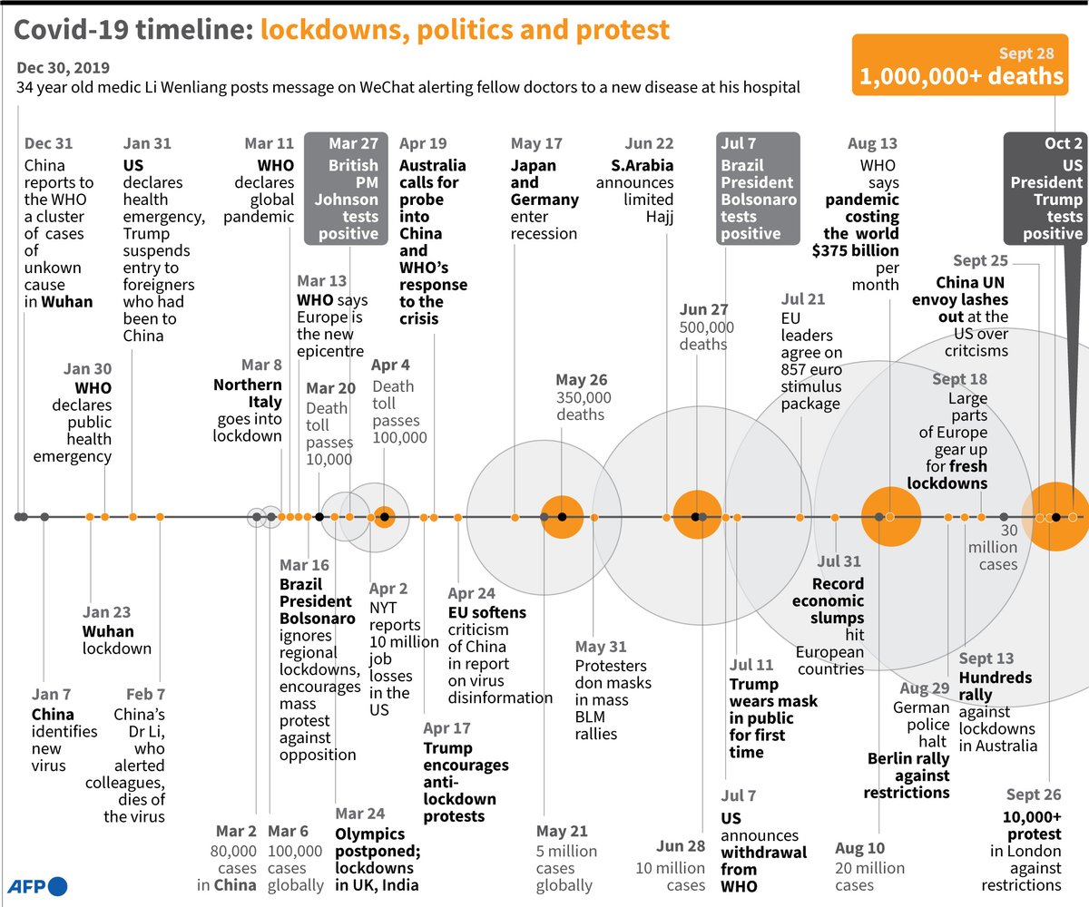 Afpgraphics On Twitter A Timeline Of Covid 19 Lockdowns Politics And Protest As Us President Trump Tests Positive To The Virus Afp