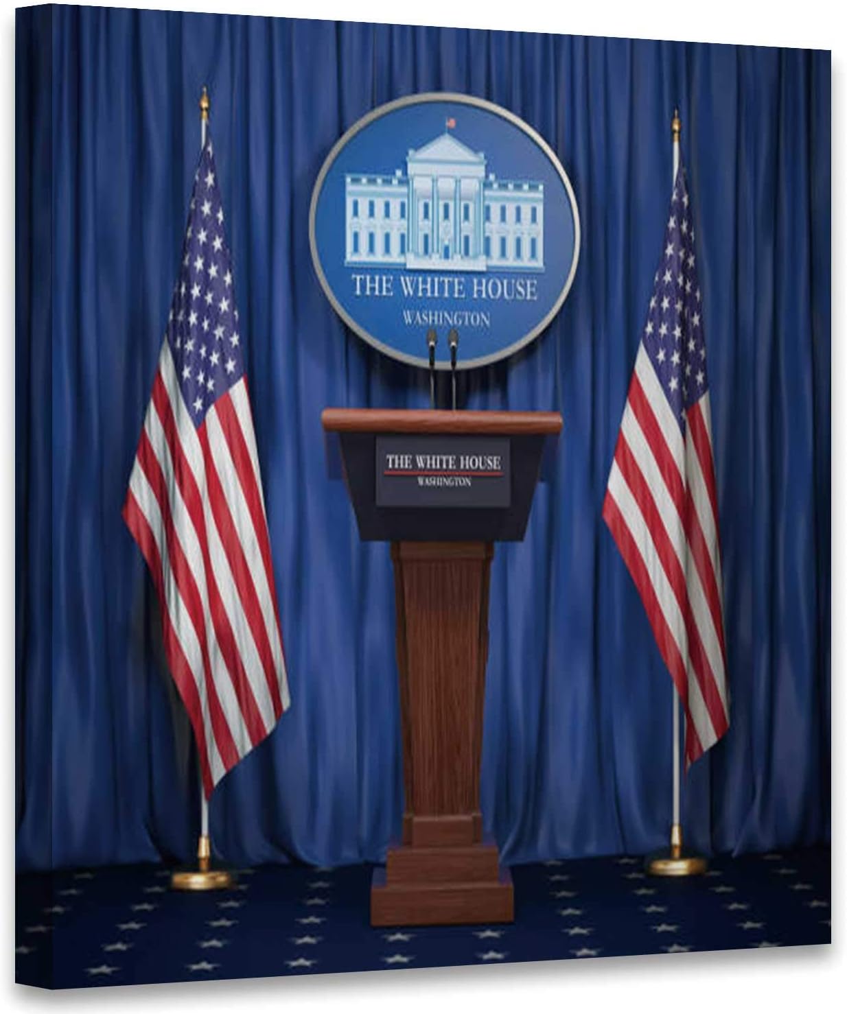 Amazon Com Briefing Of President Us United States In White House Podium Colorful Tribune With Usa Flags And Sign Houise Politics Concept Usa Art Print For Kitchen Washington Dc Art Print For Office Decor 12x12