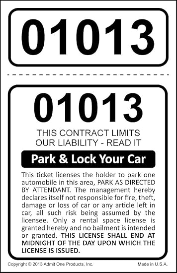 Amazon Com 2 Part Valet Parking Tickets Park Lock 2 000 Card Stock White Office Products