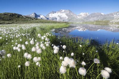 Cotton Grass Frames Snowy Peaks Reflected In Water Val Dal Bugliet Bernina Pass Canton Of Graubu Photographic Print Roberto Moiola Allposters Com