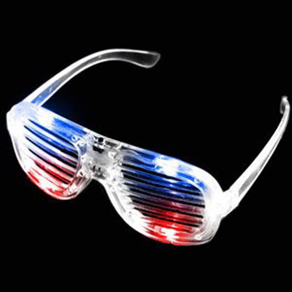 Amazon Com Light Up Flashing Rock Star Shutter Shade Glasses 9 Colors Available Tons Of Fun For That Party Red White And Blue Toys Games