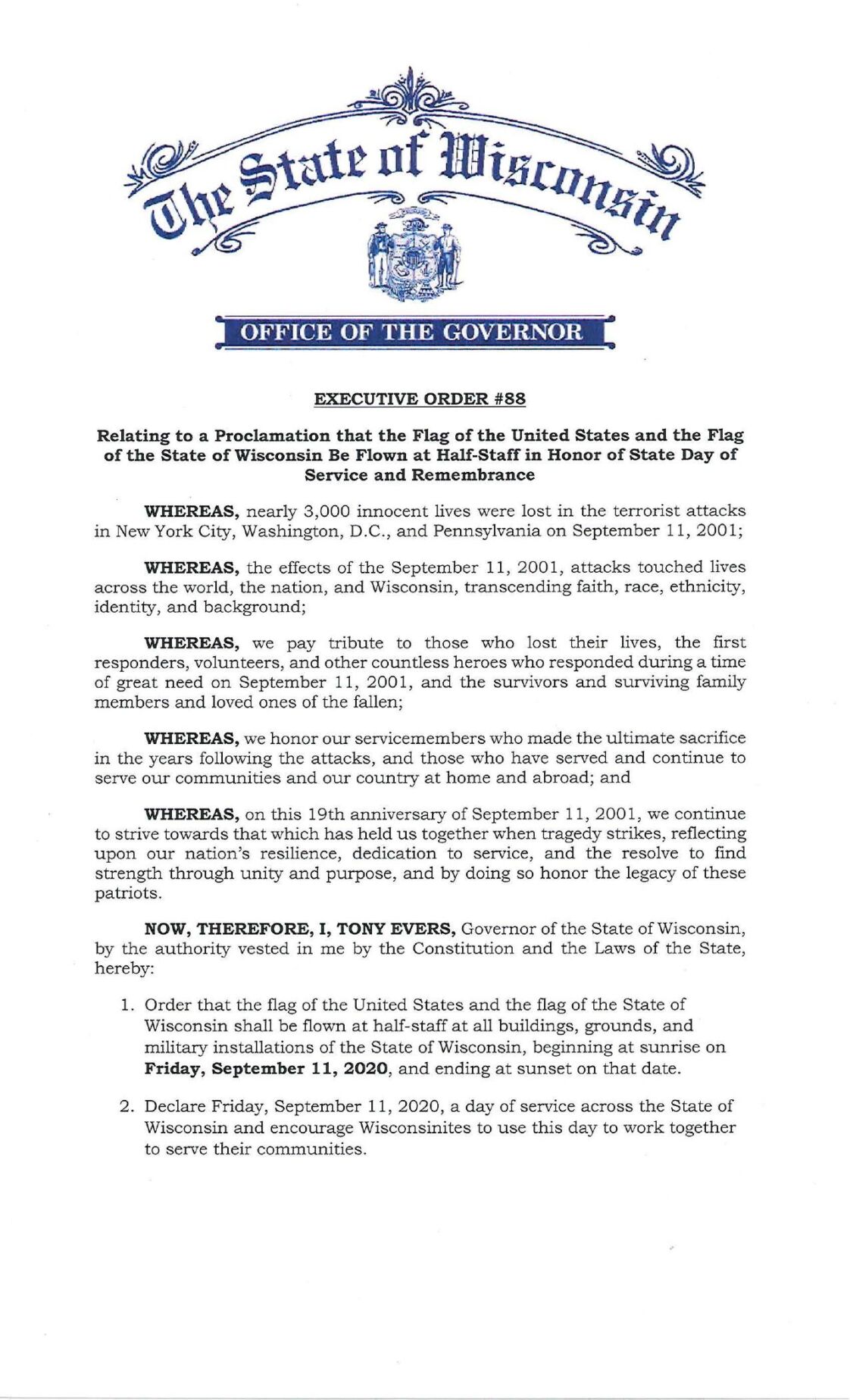 Gov Evers Orders U S Flag To Half Staff Washington County Insider