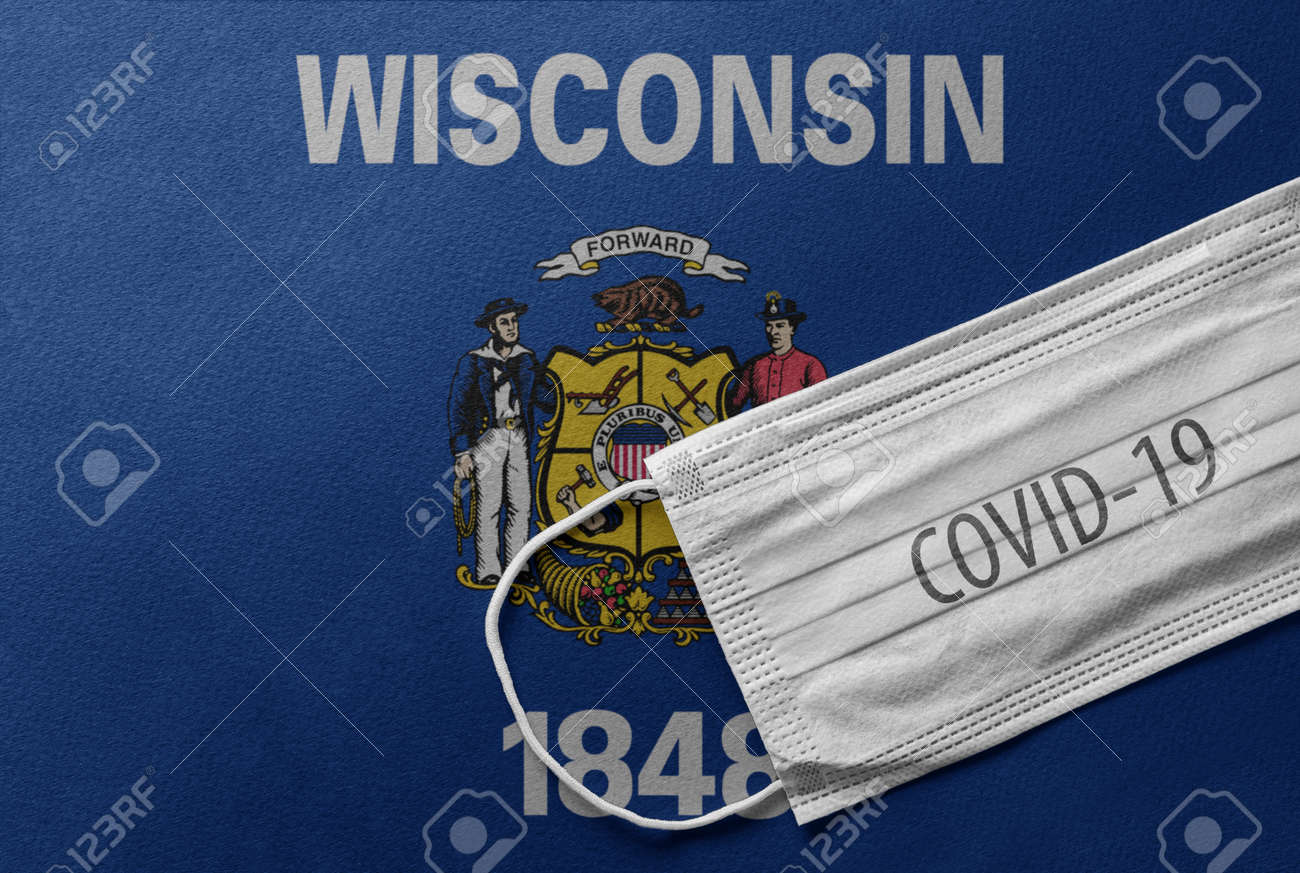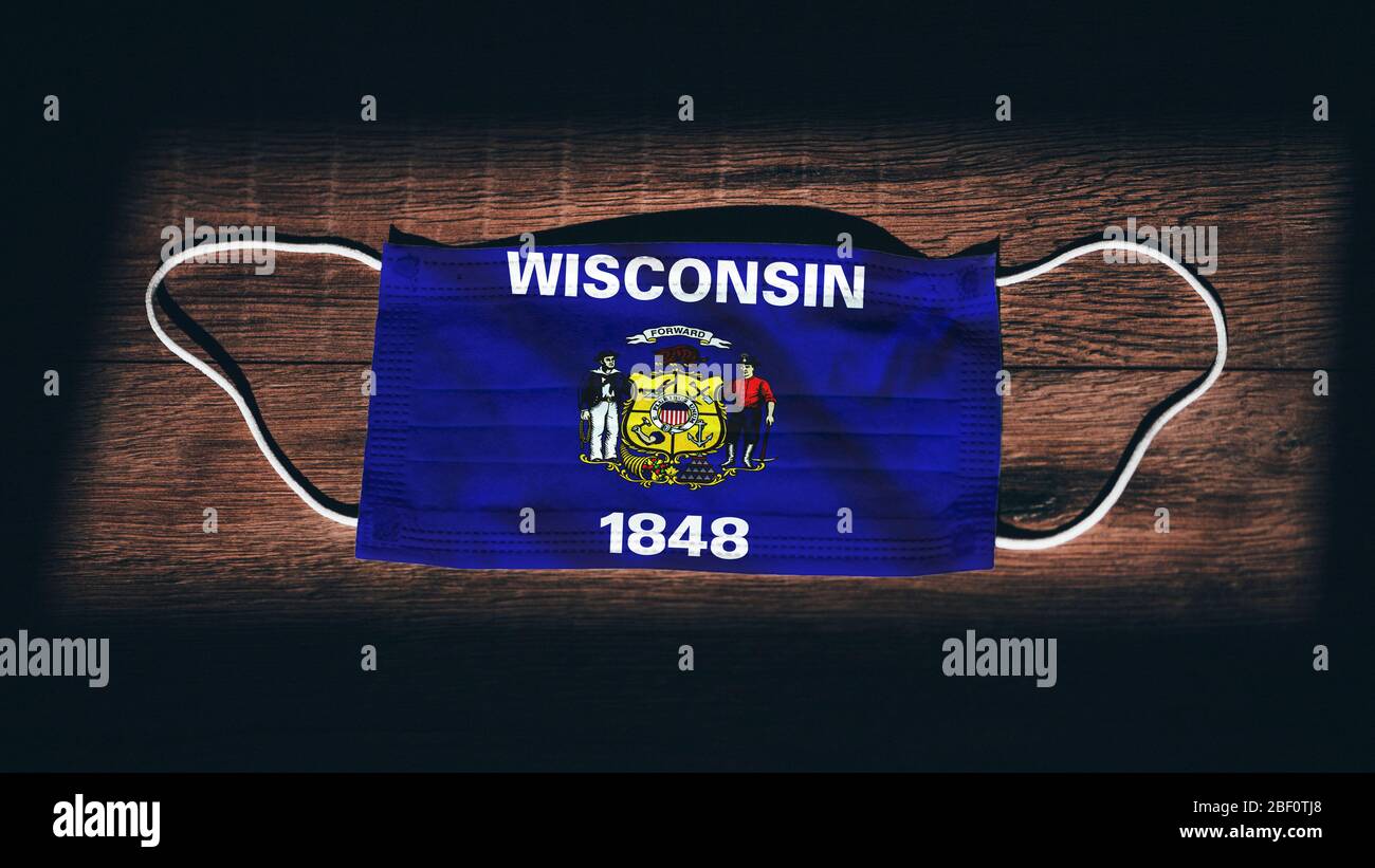 Wisconsin Flag Coronavirus Covid 19 In U S State Medical Mask Isolate On A Black Background Face And Mouth Masks For Protection Against Airborne I Stock Photo Alamy